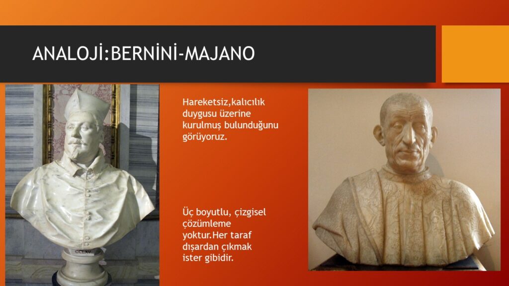 • Barok heykelcilikte hareketin girmesi, hareket duygusunun tanımlanması tektonik yapının parçalanması yüzeysel kom. Yerini derinliğin alınması.