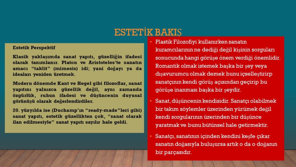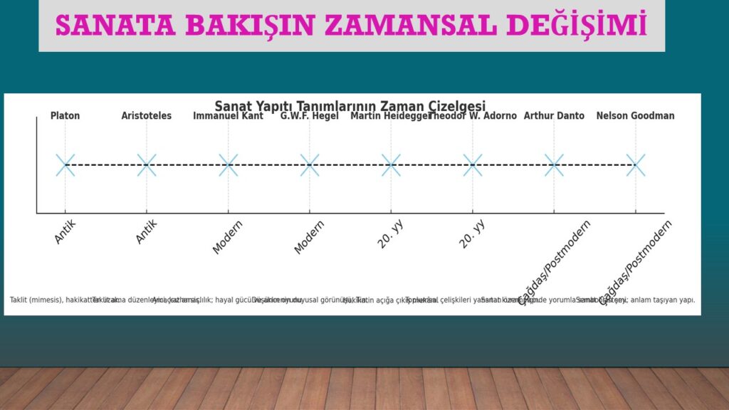 Sanat, kendine özgü bir varlık alanı olarak görülmeyip, sadece bir tür etkinliğin adı olarak görüldüğünde, yani kendi bütünlüğü içinde ve insanla ilgisinde ele alınmadığında sadece sanat etkinliğinin ve sanat eseri ortaya koymanın ilke ve metodları verilmeye çalışılır (Mengüşoğlu 1983: 219-220). Yeniçağ’dan günümüze kadar gelen estetik yaklaşım içinde birçok görüşü barındırsa da, bunlardan hiçbiri, sanatı bir varlık alanı olarak ele almamaktadır. Bu estetik görüşlerin hareket noktaları sanat eseri değil, kendi dönemleri içinde geçerlilikte olan bilgi, varlık, etik görüşleridir.