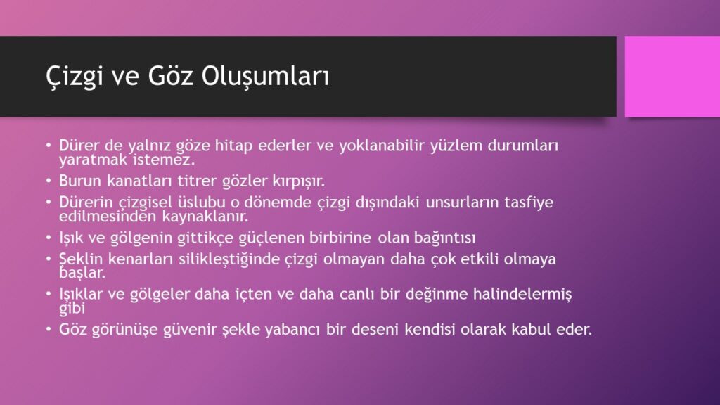 Wölfflin, sanat kavramlarına mimaride de oluştuğunu gördüğü kavramları sanat yapıtları üzerinde ön izleyerek bütünsel bir bakışın nesnesi yapmıştır. Hemen kabul edilebilecek içerikler sunan çizgisel-gölgesel, düzlem-derinlik, açık form-kapalı form gibi kavramlar üzerinden yaptığı eleştirisi kendi içinde tutarlı sanatçının dış ekspresyonunu anlamak adına yönlendiricidir. O zaman biz biraz Wölfflin’in pergelinin biraz dışına çıkalım.